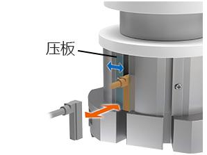 通过采用新方式的滑动压板,无需拆下卡盘本体,即可更换开关。